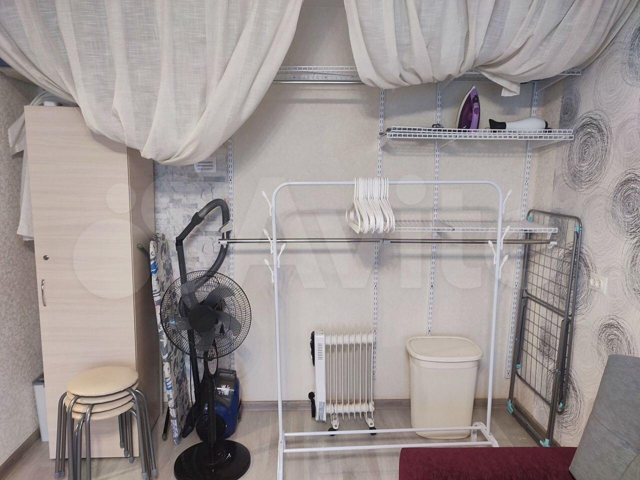B квартирe тeпло. Имеeтся балкон со стеллажом для хранения вещей. На кухне имеется посуда.