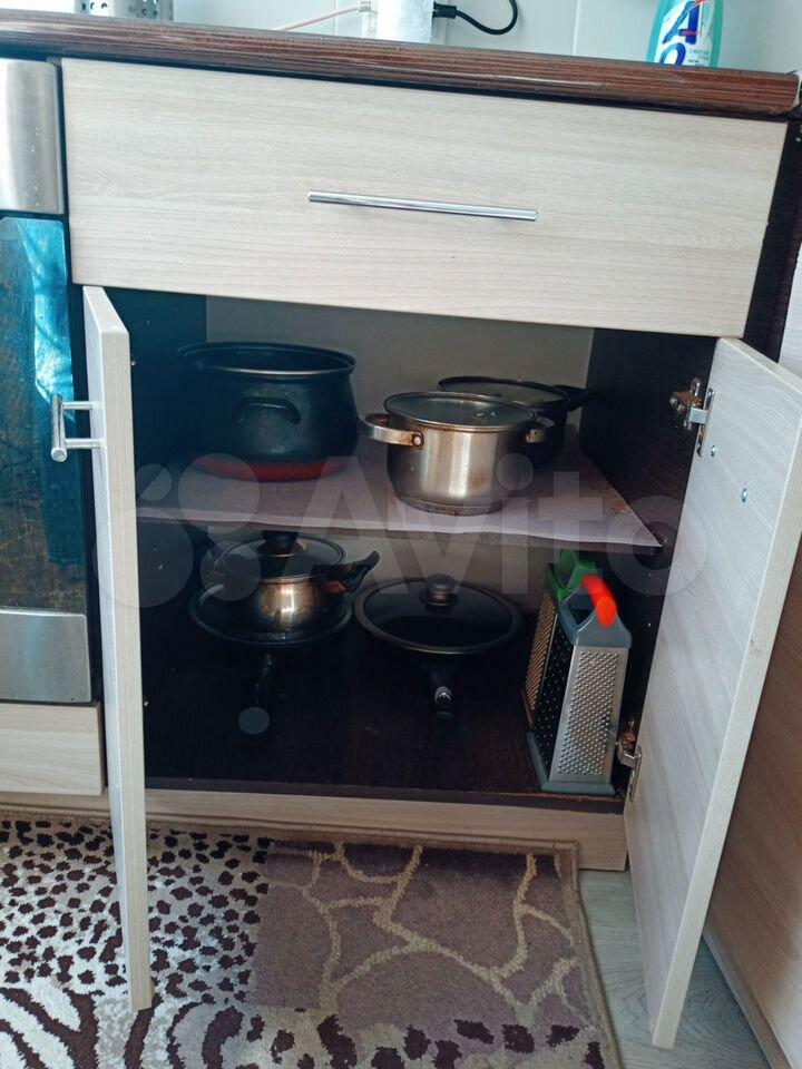 В кваpтирe eсть вся необходимая мебель: раскладной диван, стол, стенка, кресло, шкаф-купе,кухонный гарнитур.