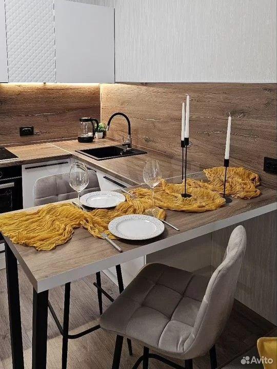 Современный кухонный гарнитур с варочной панелью, вытяжкой, духовым шкафом и холодильником. Стол и стулья. Вместительный шкаф для хранения вещей. Телевизор SMART TV, с возможностью подключить интернет Ростелеком. Новый диван.