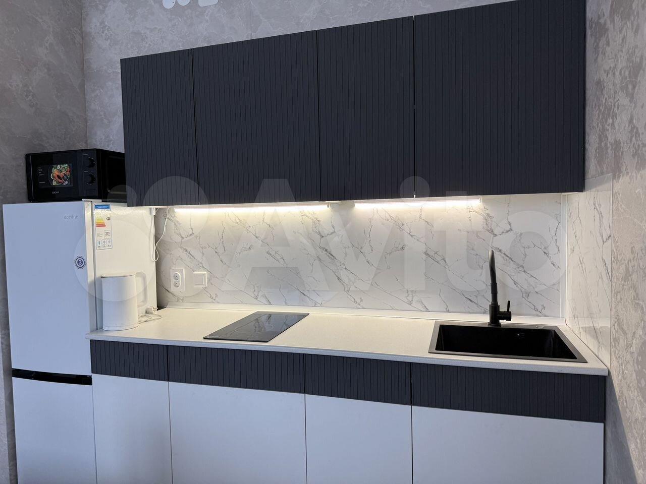 · Кухня: индукционная варочная панель, духовой шкаф, современный холодильник.