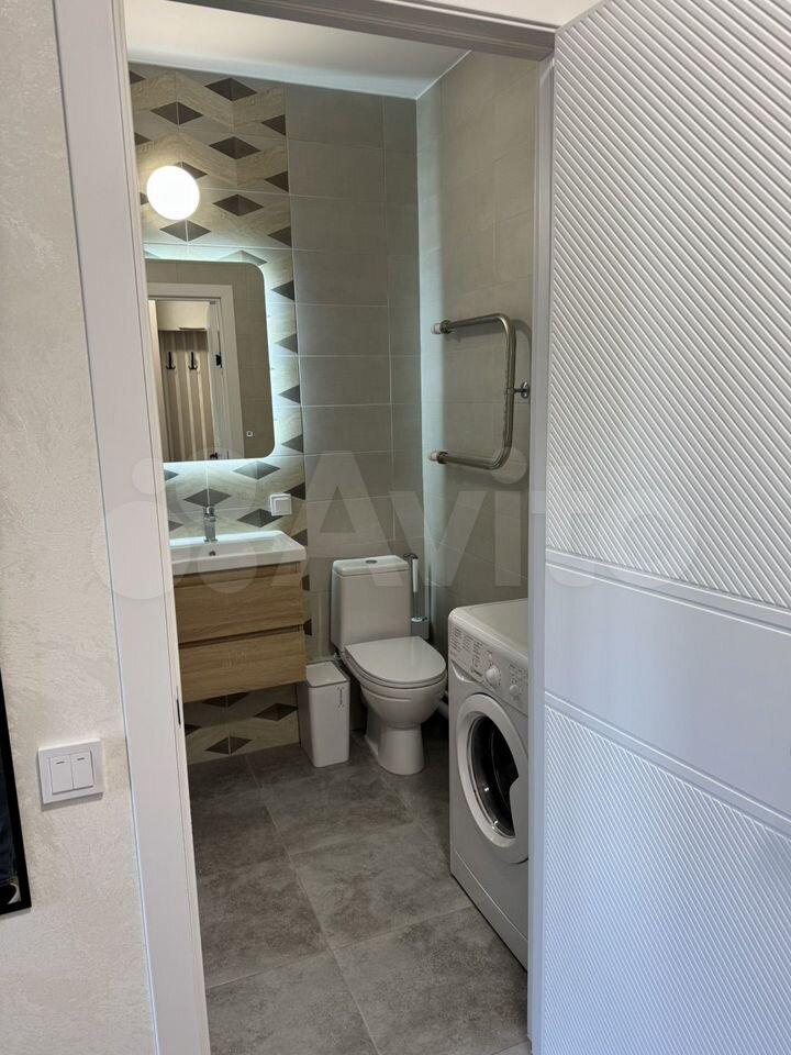 Caнузел c душевой, cтиpaльнoй мaшиной, pаковина с тумбой, зеркало с подсветкой