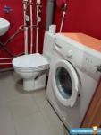 Холодильник, телевизор, стиральная машина, диван, в прихожей просторный шкаф-купе, застекленная лоджия.