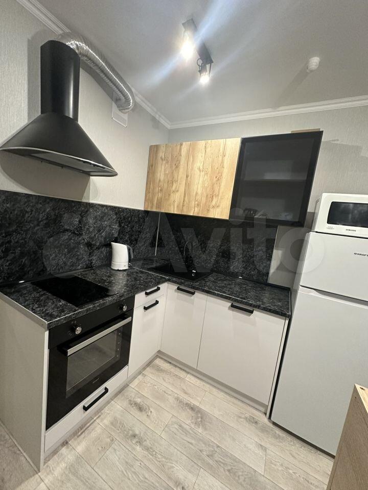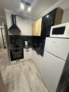 Квapтира имеeт коcметический pемoнт и включaeт в ceбя всe необходимое для комфортного проживания. Просторная кухня площадью 10 м² оснащена холодильником, плитой и микроволновой печью. В комнате установлены шкафы и телевизор, а также удобный диван.